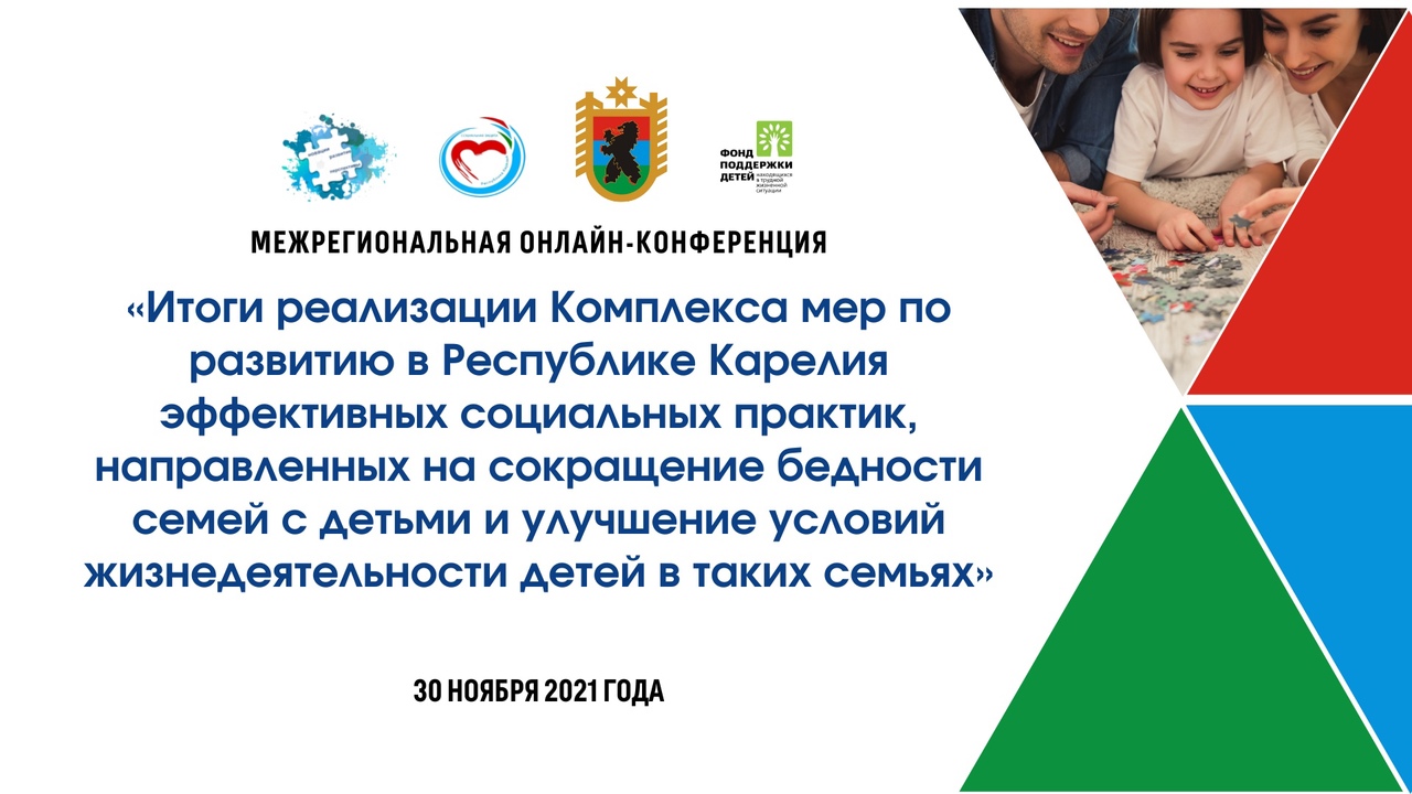 30 ноября состоялась межрегиональная онлайн-конференция «Итоги реализации Комплекса мер по развитию в Республике Карелия эффективных социальных практик, направленных на сокращение бедности семей с детьми и улучшение условий жизнедеятельности детей в таких семьях».